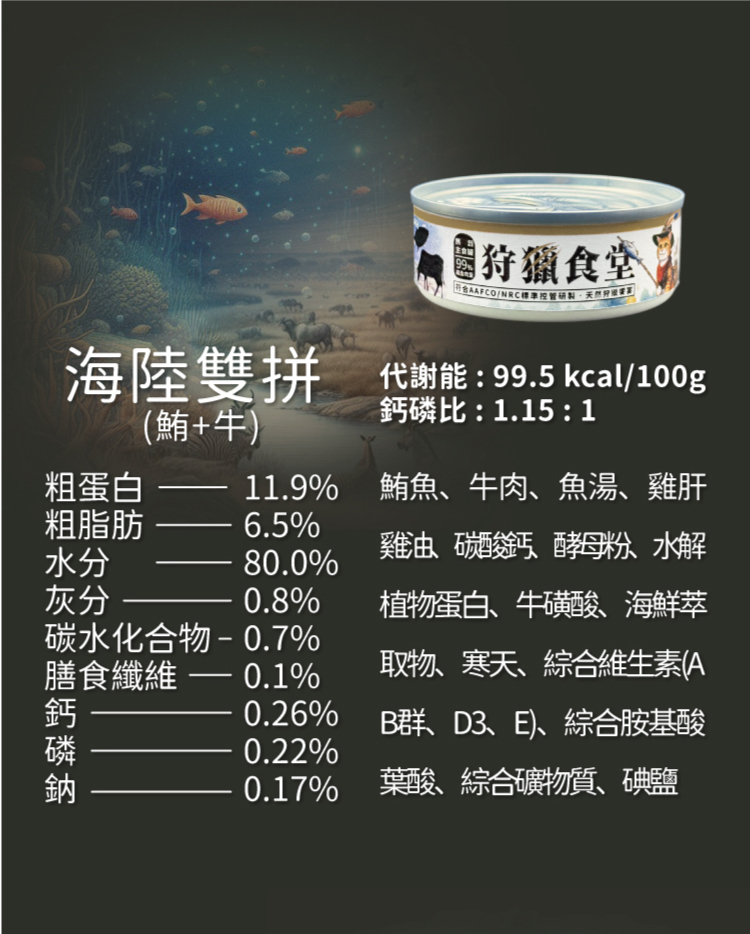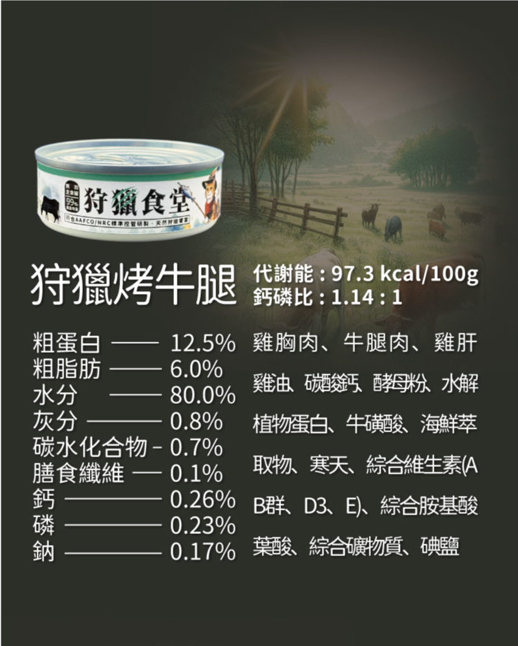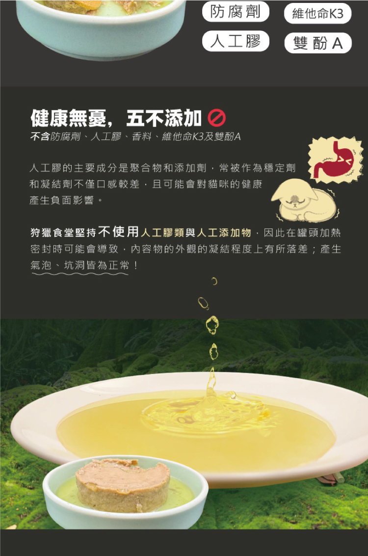 注意事項:需存放於陰涼處,開封後需冷藏保存並於兩日內食用完畢。本產品為鮮肉烹煮,罐底有蛋白質沉積物為正常現象。