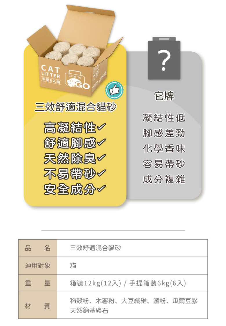 品名:【NiceU】三效舒適混合貓砂(12入)