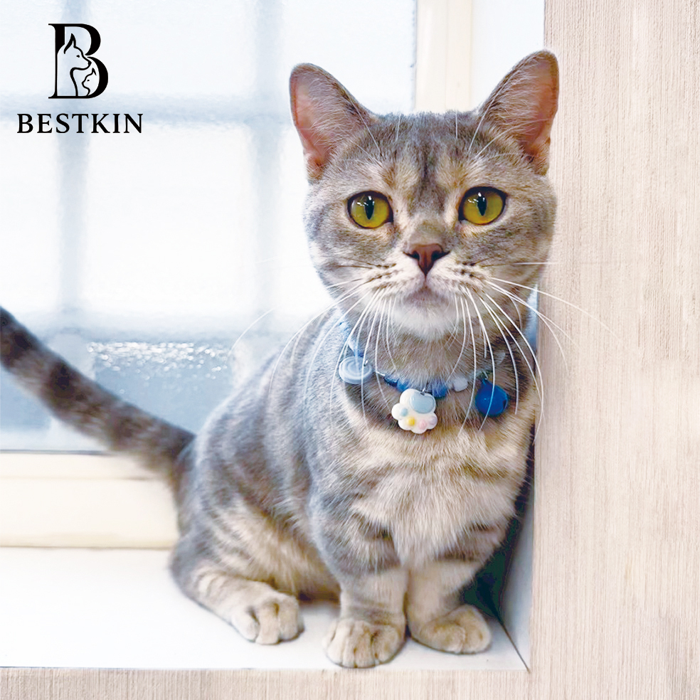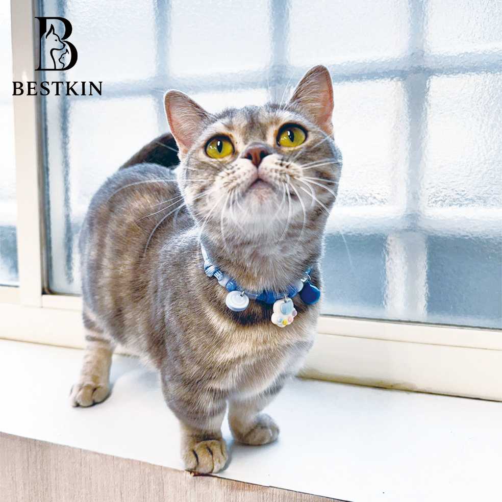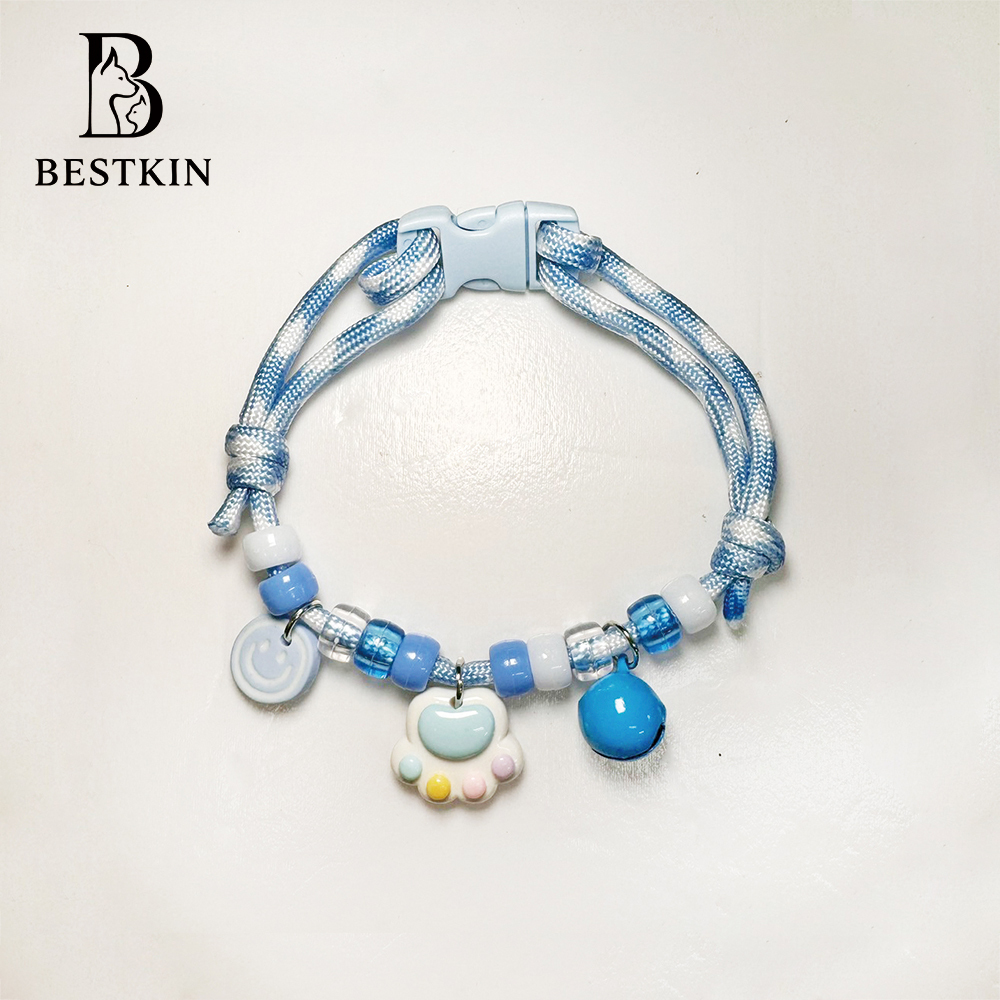 晴空小腳印寵物項圈, 清爽藍白配色,點綴小腳印吊飾與清脆鈴鐺,清新可愛,讓毛孩彷彿漫步在晴空下!