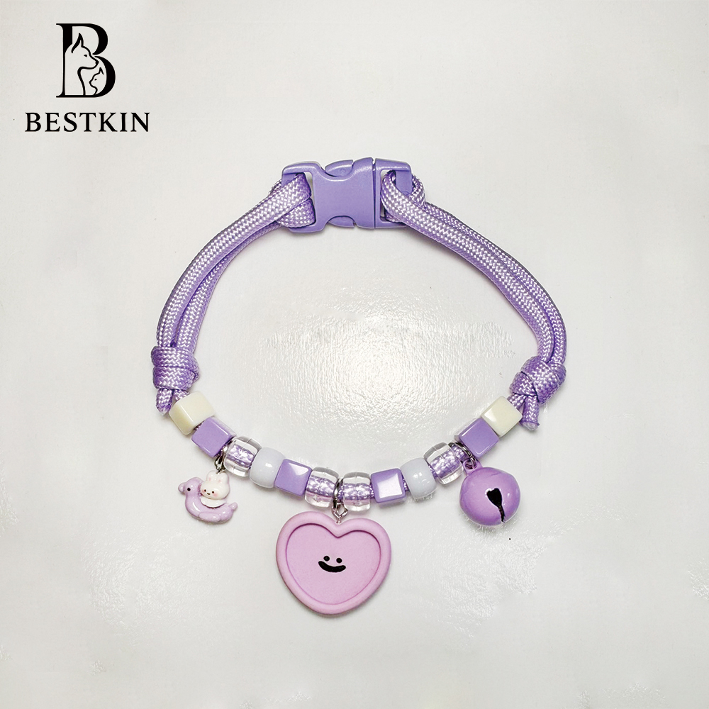 紫戀樂園寵物項圈,浪漫紫色系搭配笑臉愛心與小兔吊飾,甜美又療癒,讓毛孩時刻散發夢幻可愛魅力!