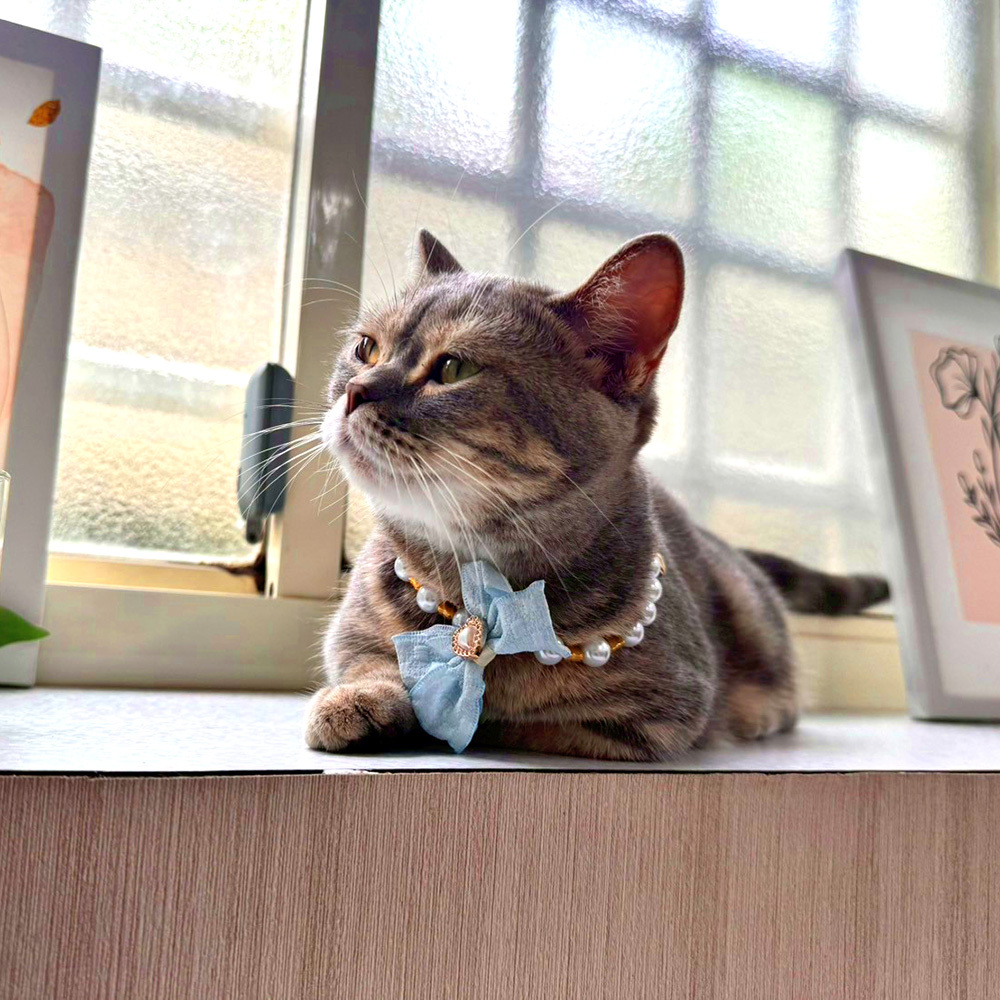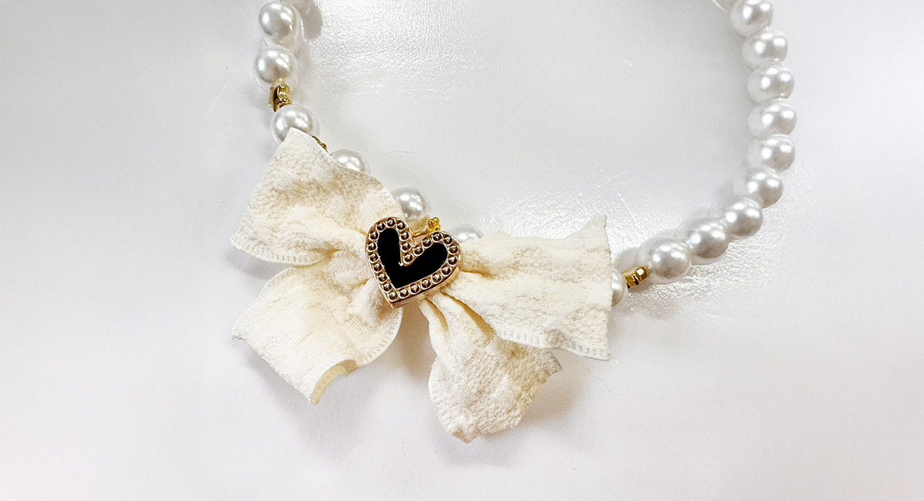 優雅珍珠搭配蝴蝶結設計,點綴愛心與星星鑽飾,閃耀高貴氣質。讓毛孩瞬間化身小公主,時尚又浪漫。