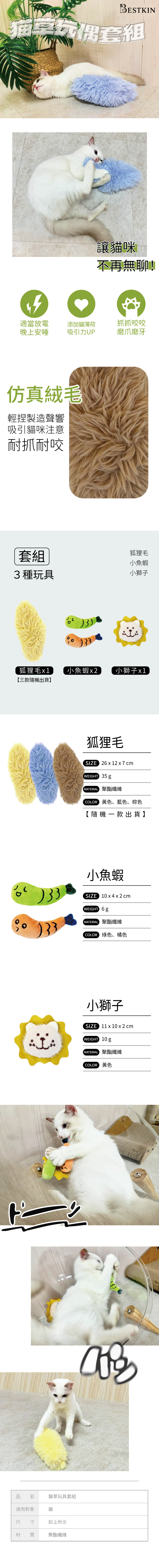 · 四個一組:狐狸毛(顏色為隨機出貨,不換色)、小魚蝦(2個)、小獅子