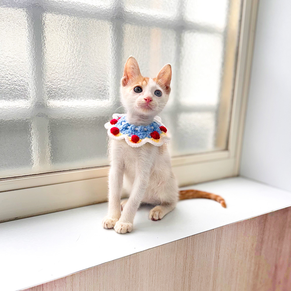 手工鉤織寵物項圈,兩款色系展現不同魅力:莓果款甜美活潑,晴空款清新明亮。柔軟舒適不勒頸,日常佩戴或外出拍照皆能突顯毛孩可愛氣質。