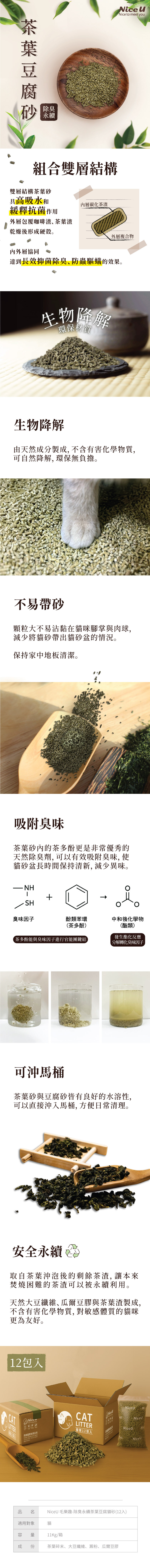 品名:【NiceU】】除臭永續茶葉豆腐貓砂(12入)