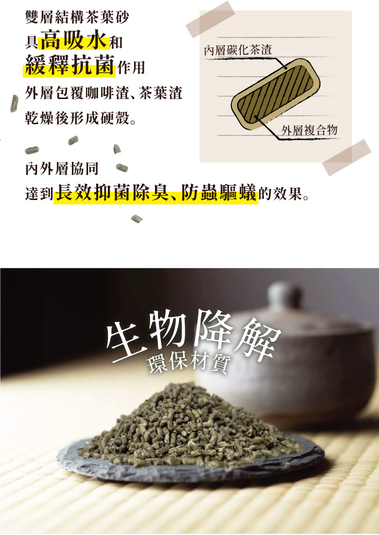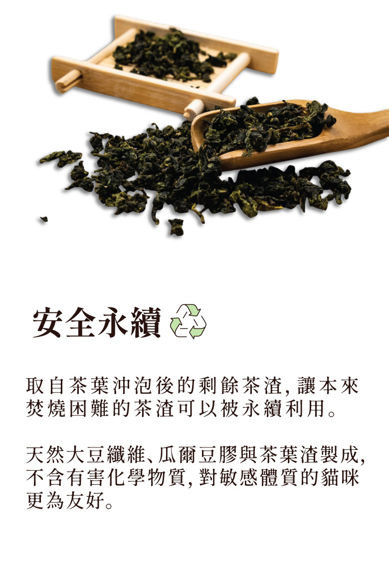 材質:茶葉碎末、大豆纖維、澱粉、瓜爾豆膠