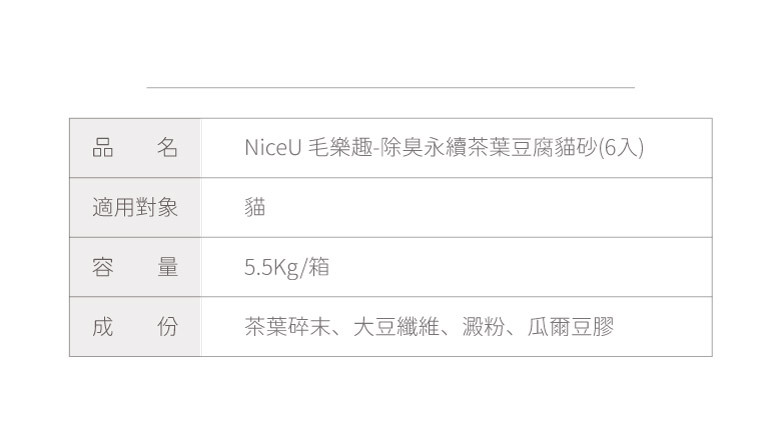 品名:【NiceU】】除臭永續茶葉豆腐貓砂(6入)