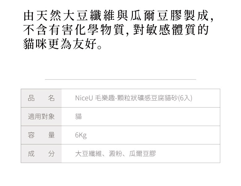 品名:【NiceU】顆粒狀礦感豆腐貓砂(6入)