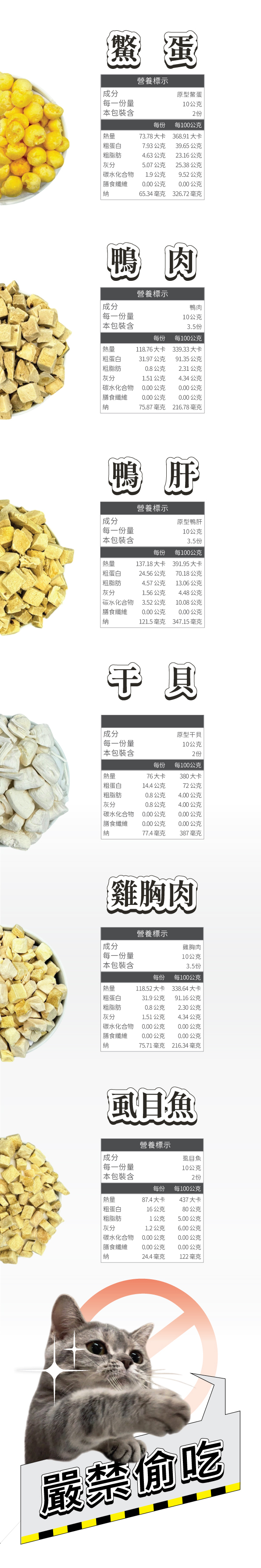 多種口味 (雞胸肉/鴨肉/鴨肝/干貝/虱目魚/鱉蛋)